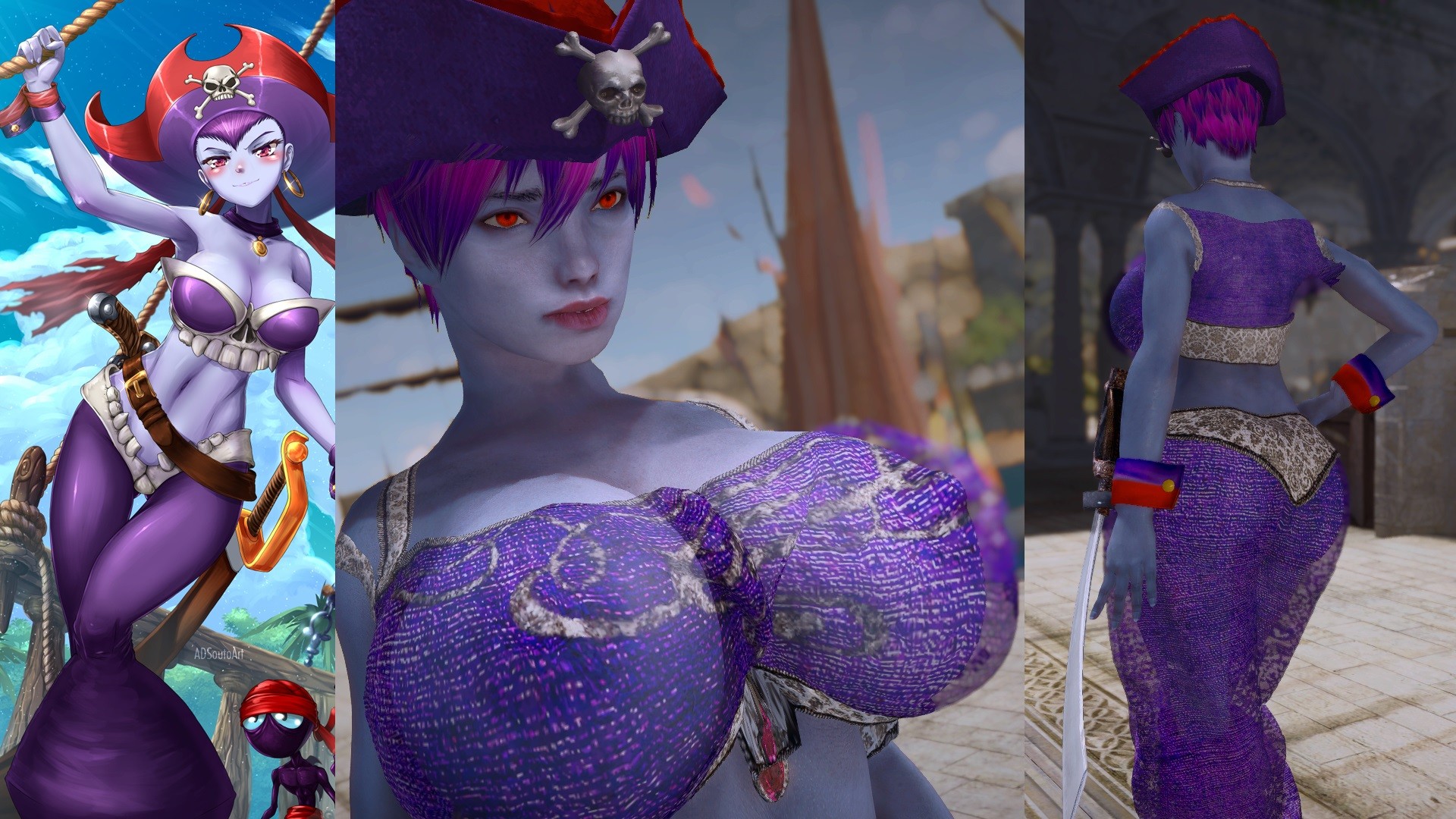 Нами и Робин из аниме One Piece. Робин может контролировать прочность своего тела с помощью заклинаний плоти, а для нападения использует рукопашный бой. Нами, воровка, использует кинжалы и двуручное оружие. Пираток можно найти в Солитьюде.