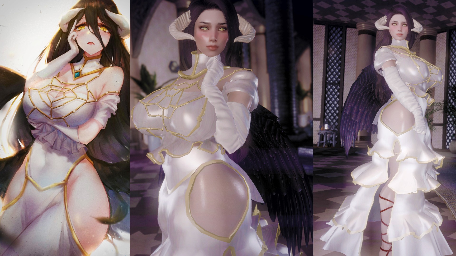 Суккуба Альбедо из аниме-серии Overlord. Не самый сильный персонаж в нападении. Ее главная способность – впитывание урона, она тяжело бронированный танк с хорошей устойчивостью к магии. В качестве оружия использует двуручный топор. Любит кости, подушки, духи и ненавидит женщин аргониан, вампирш. Можно найти в Фолкрите.