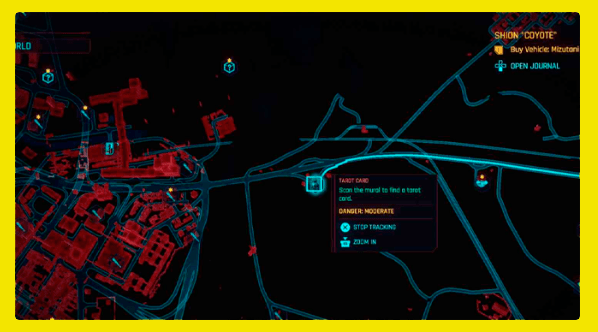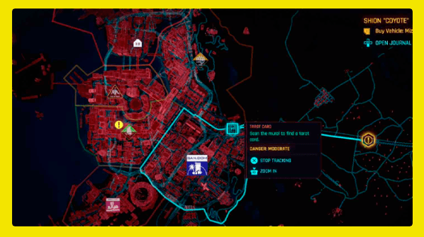 После того, как вы найдете свою первую карту Таро, вы автоматически получите дополнительное задание «Шут из Найт-Сити», добавленное в свой дневник (это может занять несколько минут). После того, как вы найдете все 20 карт Таро, поговорите с Мисти, девушкой из офиса Виктора Потрошителя. Вы можете отслеживать квест из своего журнала.