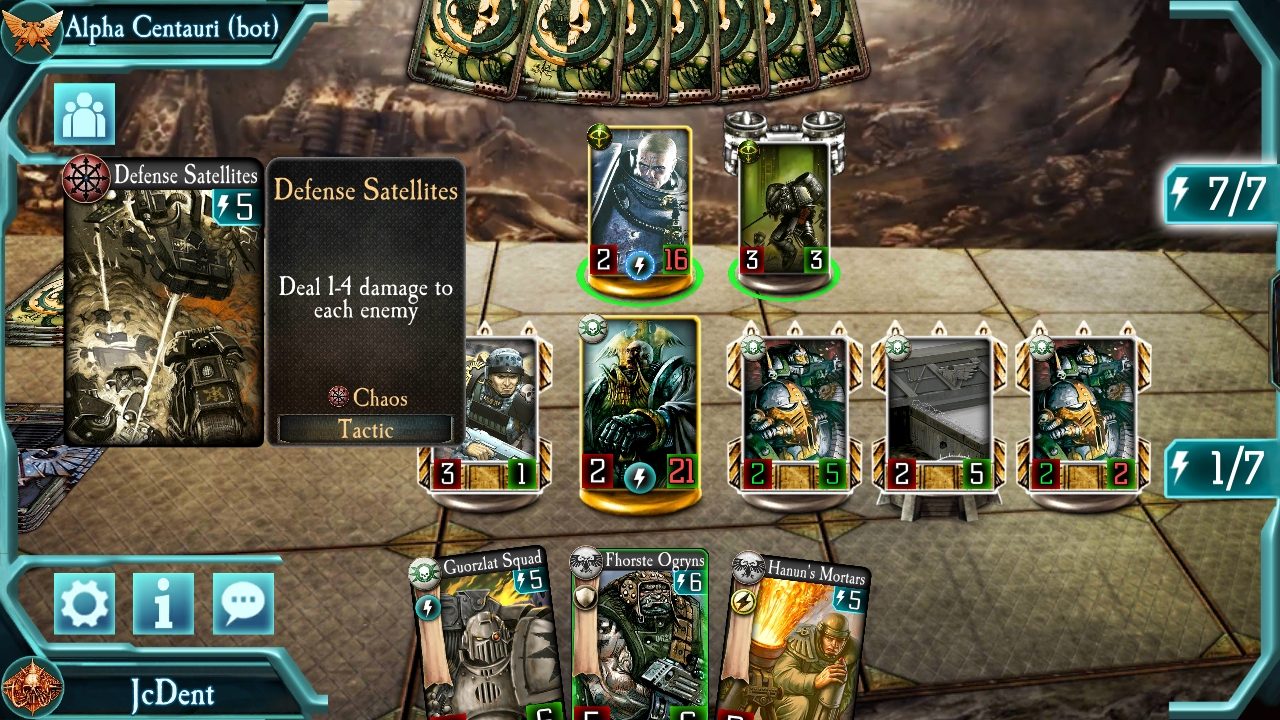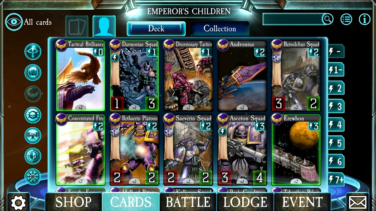 Horus Hersey: Legions – это типичная карточная игра с пошаговыми битвами. Хотя некоторые карты могут быть размещены на поле в любой ситуации, то для большинства из них требуются очки энергии, которые генерируется за каждый ход. Основная цель – уменьшить количество очков жизни противника до нуля, которые присваиваются командиру или базовой карте с начала игры.