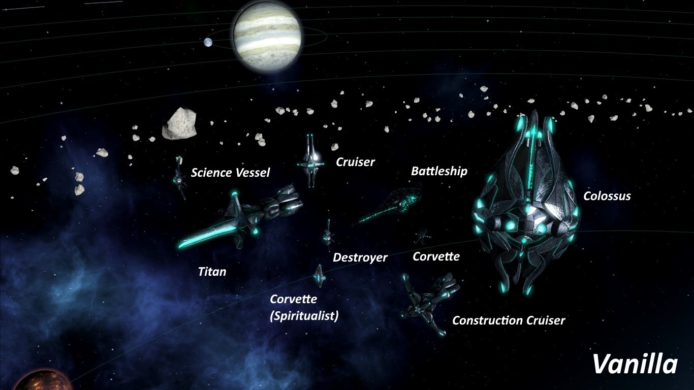 Данный мод добавляет в игру Stellаris 6 наборов кораблей Падшей Империи – Materialist (Материалист), Spiritualist (Спиритуалист), Xenophile (Ксенофил), Xenophobe (Ксенофоб), Militarist и Pacifist (Милитарист и Пацифист). У каждого корабля своя собственная модель.