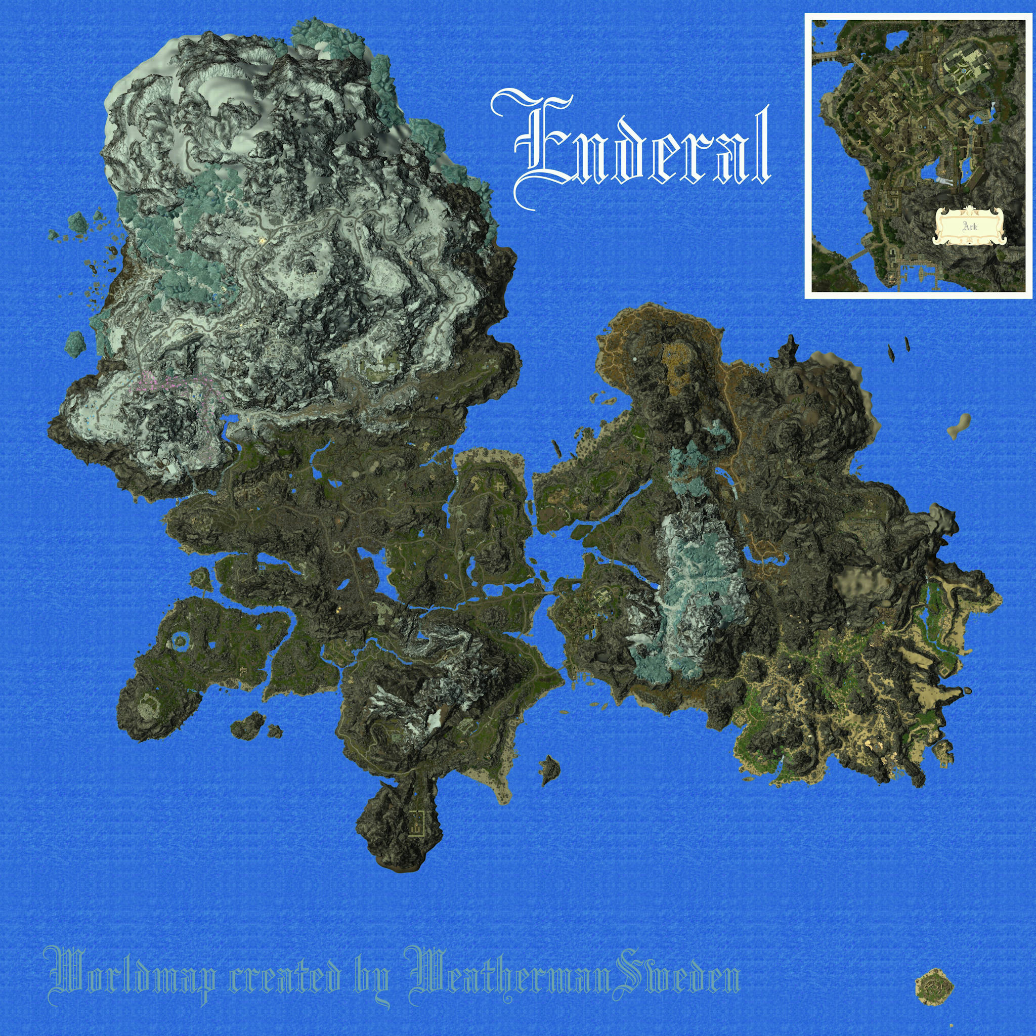 Примечание: эта карта была сделана еще в 2017 году и за основу брался ландшафт “оригинального” Enderal, так что те изменения ландшафта , что есть Enderal: Forgotten Stories не вошли в эту карту.