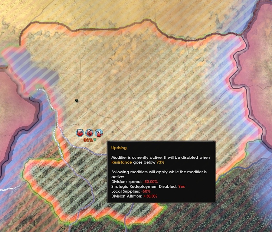 - Первый выражается пассивным штрафом на регион, который увеличит небоевые потери, сократит скорость передвижения и замедлит восполнение организации войск оккупирующей нации.