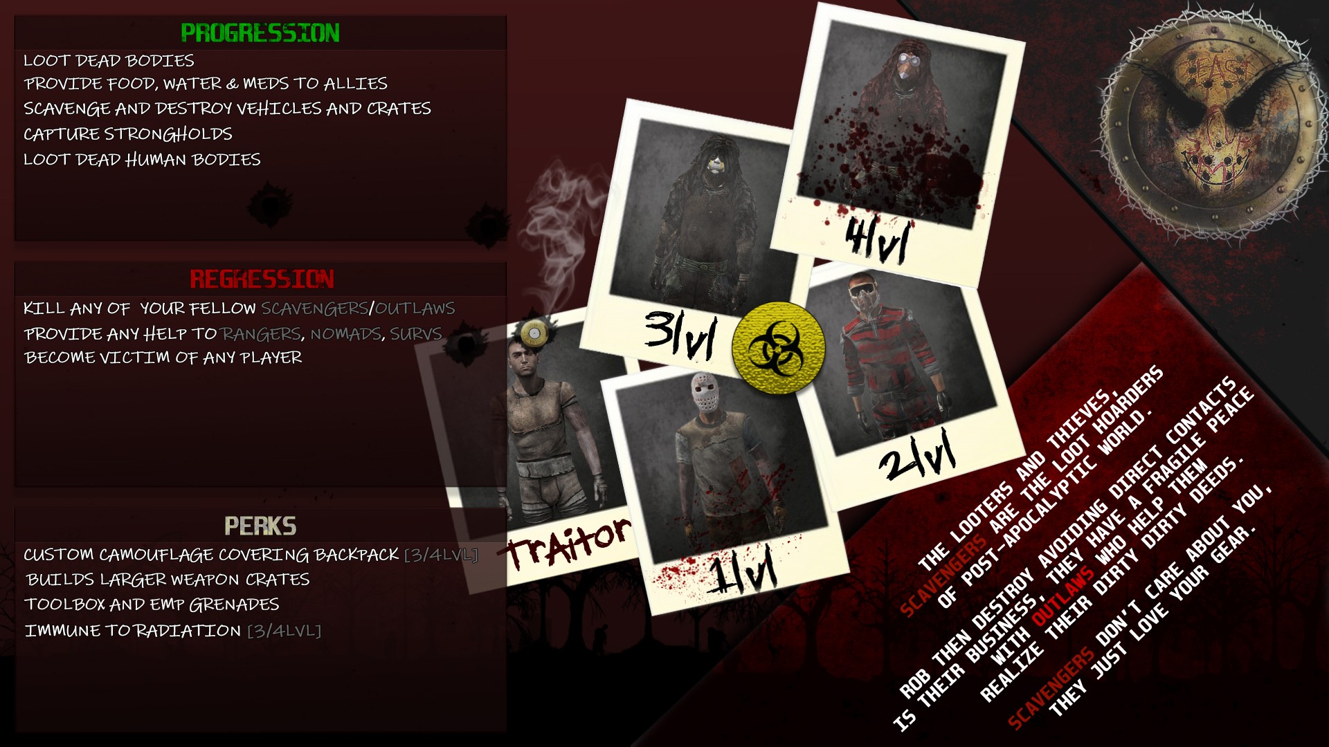 - Исследовать враждебную постапокалиптическую среду.