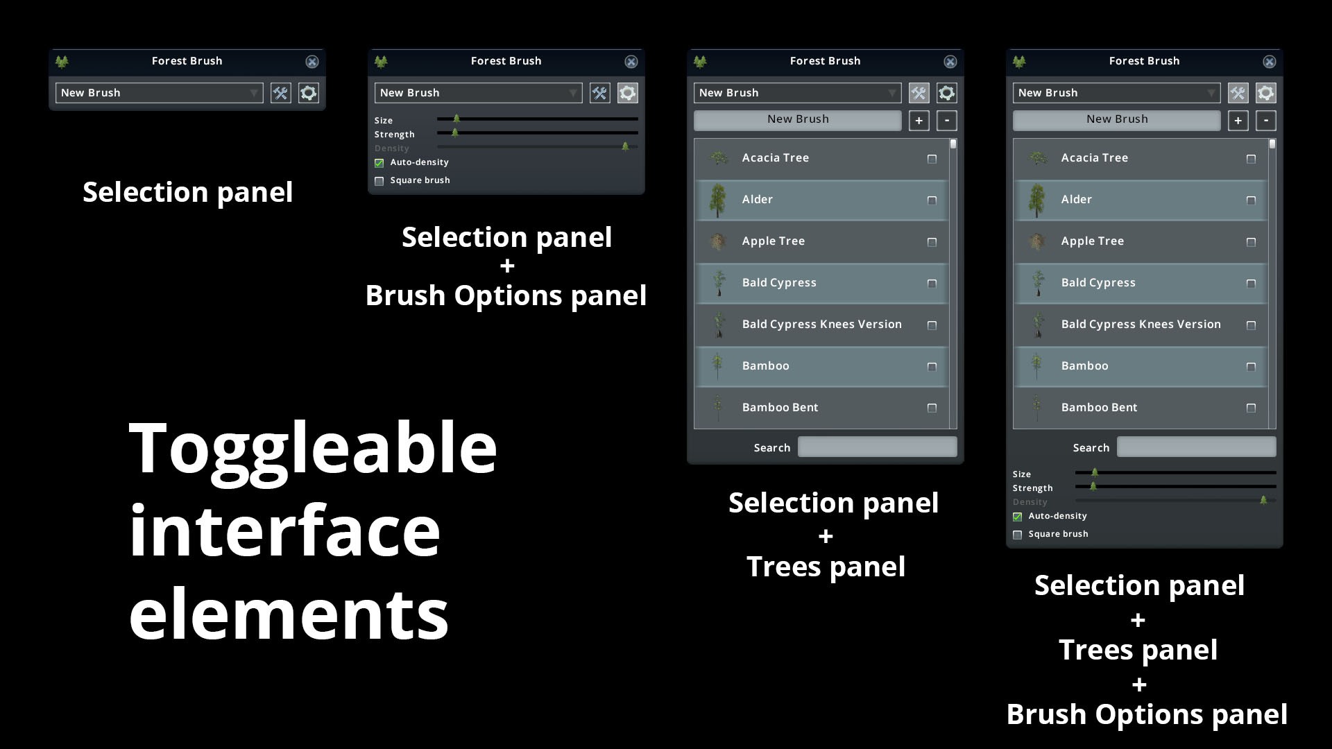 - Создание / редактирование / удаление кистей деревьев