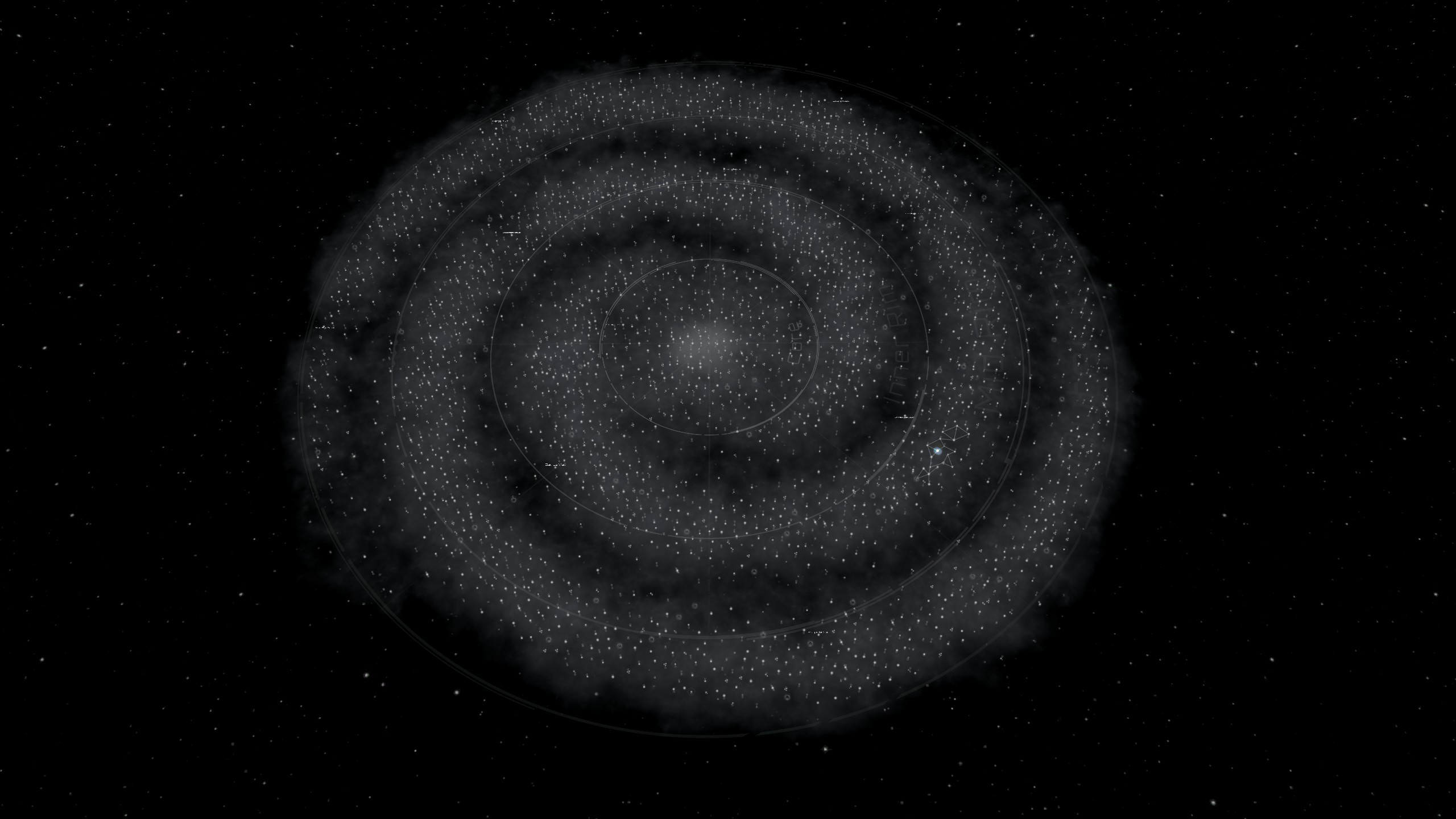 Ядро галактики теперь менее яркое, чтобы сделать видимыми центральные системы и гиперланы.