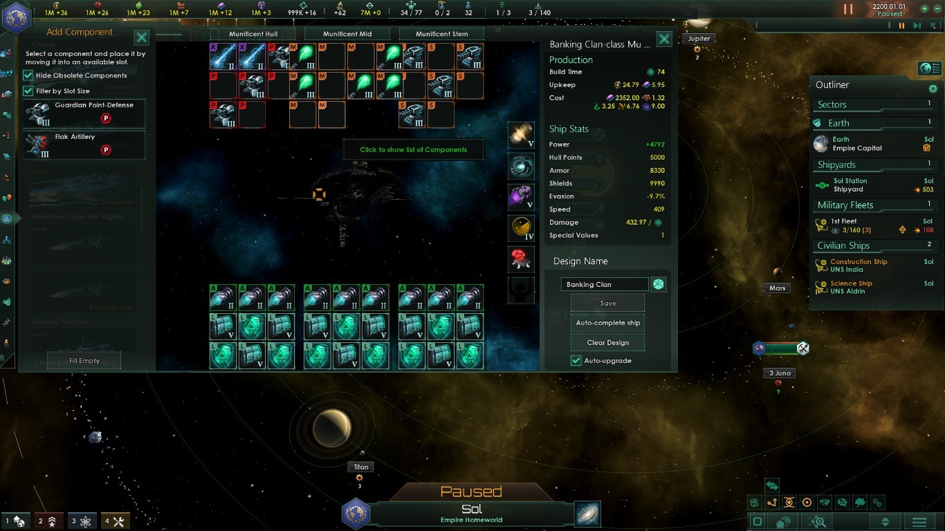 - Немного баланса (полностью оборудованный Munificent будет иметь мощность флота 5-7k );