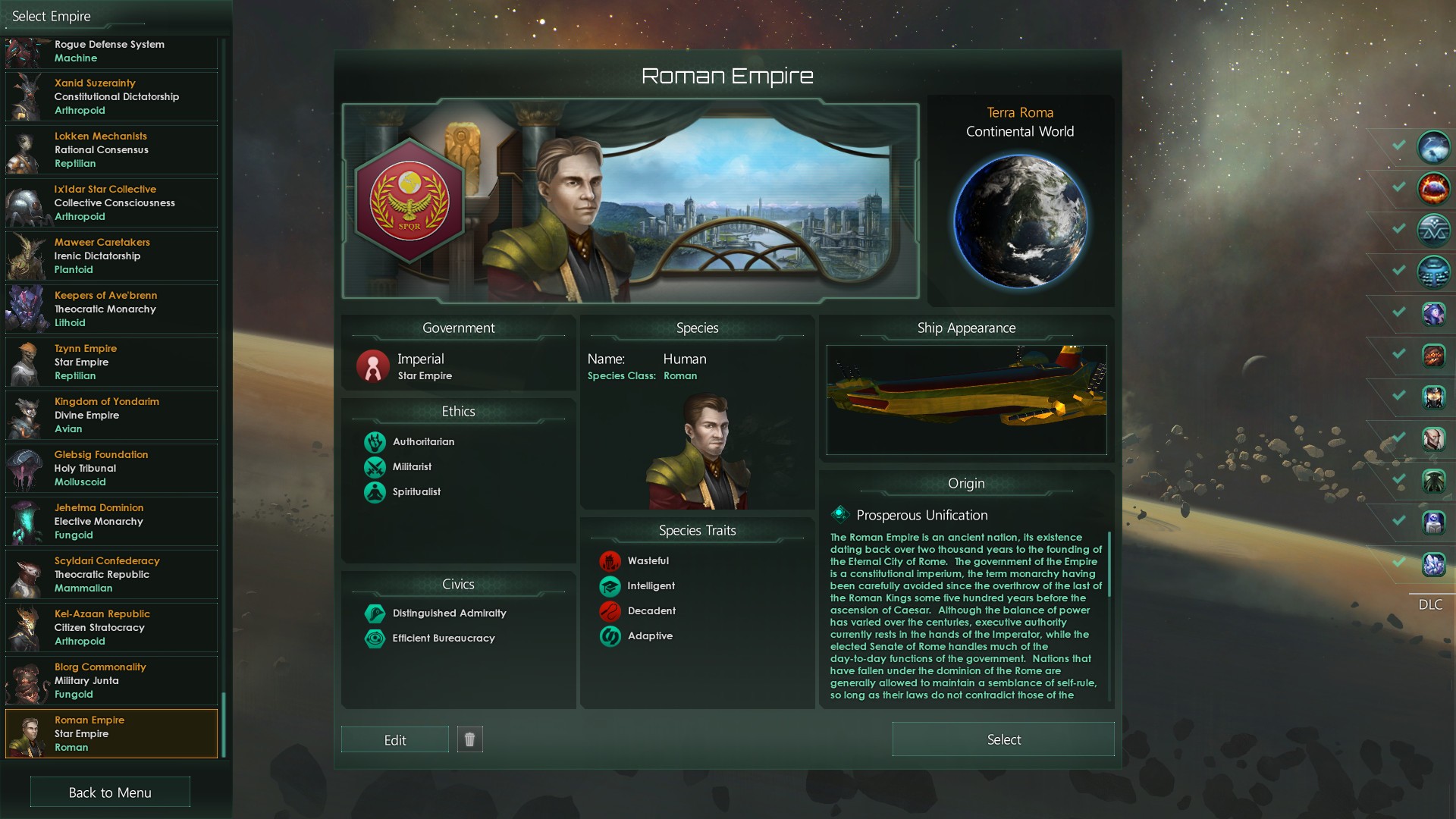 - Корабли (с дизайном, основанным на кораблях и архитектуре Римской Империи);